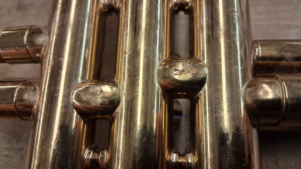 When damage is done to other parts of the horn, you may not need to use this specific technique. Some parts you can just see the damage, like on slides, crooks, & knuckles.