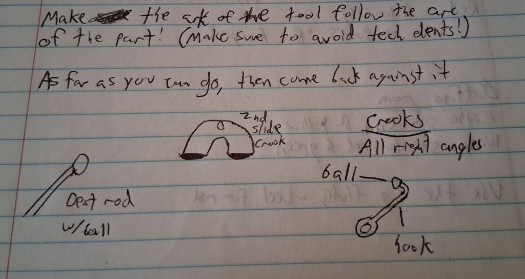 The trombone gooseneck can be tricky to work because of it’s curved nature. It can be very easy to overwork, then you’ll have to go back over it with a steel hammer & hollow tap it back down. You’ll want to grab a nosepicker & work it back up.